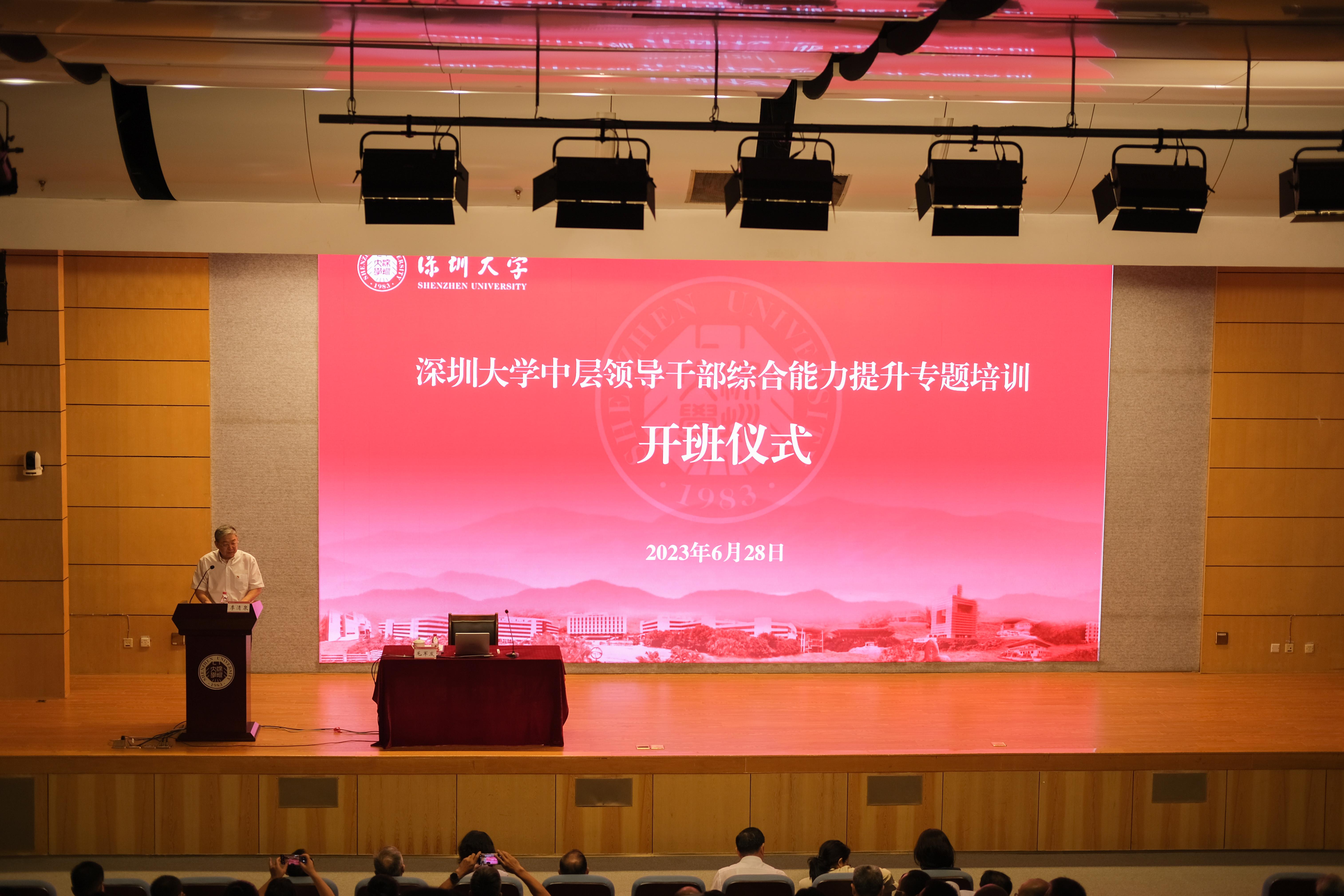 6月28日,深圳大学新一届中层领导干部综合能力提升专题培训开班仪式暨校长讲党课在汇星楼举行。党委书记李清泉、校长毛军发出席本次仪式并发表讲话。校领导、全体中层干部、学校主题教育领导小组办公室全体成员、党务秘书及党建组织员参加活动。