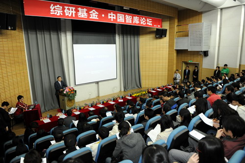 3月18日下午,由我校经济学院与深圳市综研软科学发展基金会联合举办的综研基金?中国智库论坛在科技楼2号报告厅举行。校长章必功,校党委副书记陶一桃和深圳市综研软科学发展基金会理事长、招商银行马蔚华,首届“中国软科学奖”获得者中国社科院人口与劳动经济研究所所长蔡?、国民经济研究所研究员王小鲁,以及深圳大学经济学院领导以及师生代表出席论坛。 马蔚华致辞,他指出,深圳市综研软科学发展基金...