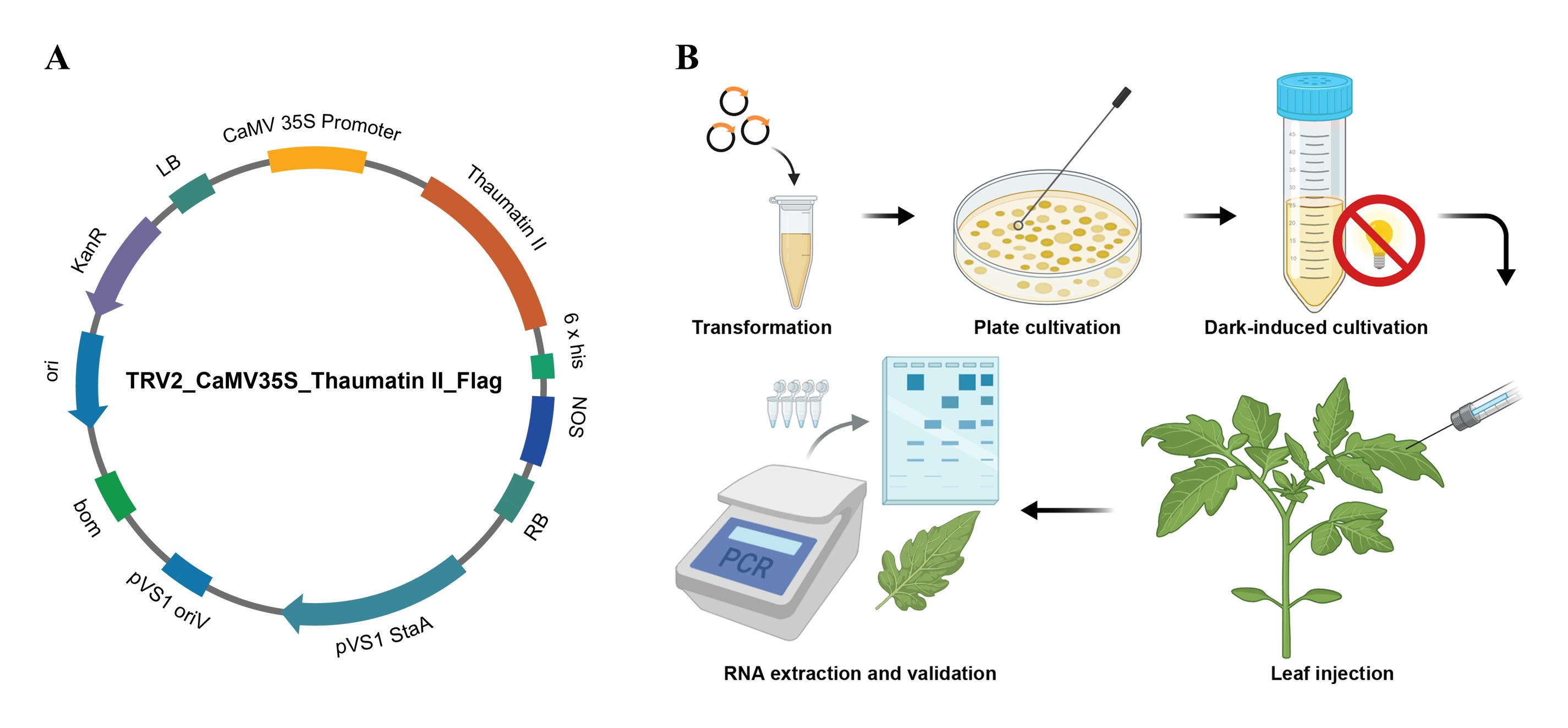 TRV病毒瞬时表达与农杆菌稳定转化的流程及验证图