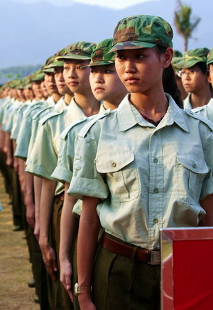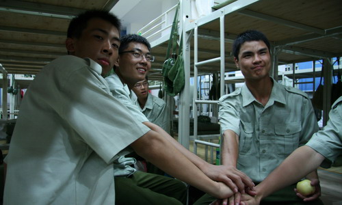 慰问团到达后,早已整齐列队等候在军训基地小广场的2008级各连学员代表们,通过整理内务、列队表演等精彩表演,向学校领导汇报他们6天来的训练成果。整齐的步伐、敏捷的反应以及宏亮的口号赢得了各位领导和老师阵阵热烈的掌声。