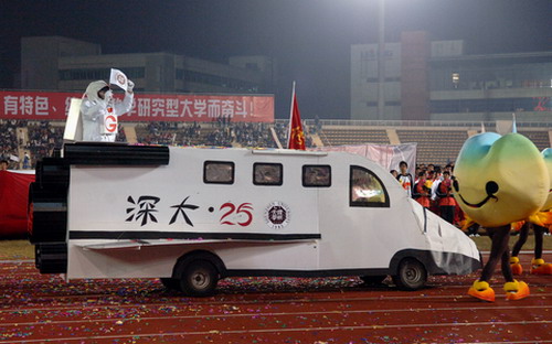 “今夜,荔园欢腾,我们以活力四射的运动会开幕式演绎冬天的火热。”12月1日晚,章必功校长的开幕词,道出了全校师生迎来一年一度校运会的喜悦与激情。深圳大学2008年运动会在田径运动场开幕。校领导江潭瑜、章必功、陶士平、陶一桃、阮双琛、邢锋、李永华,各学院、研究生部、体育部、社科部、留学生部、机关各部、处、室负责人出席开幕式。副校长邢锋主持开幕式。