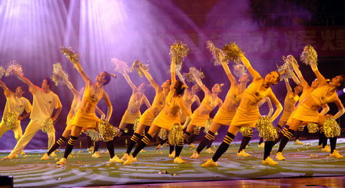 闭幕式上举行了啦啦队表演评分赛,我校18个学院的啦啦队为观众们呈上了异彩纷呈的表演。个性的服装设计、多样的队形变化、高规格的技术动作,加上队员们灿烂的笑容和动感的舞姿,迎得了观众们一阵阵的热烈掌声。