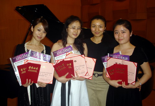2月6日,在香港举行的第四届TOYAMA亚洲青少年音乐比赛总决赛中,我校艺术系钢琴专业07级的3名同学荣获五项大奖:倪?获中国作品组“一等荣誉奖”、江嘉雯获门德尔松作品组、普朗克作品组2项“二等荣誉奖”、 杨漾获普朗克作品组、海顿作品组2项“二等荣誉奖”,指导教师为张又丹老师。