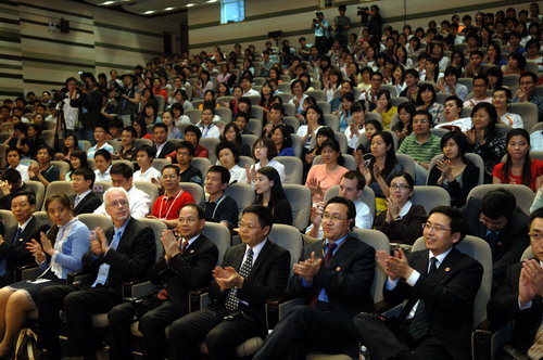 4月27日下午,德国司法部部长居普里斯“深圳大学名誉教授”聘任仪式暨演讲会在科技楼一号报告厅举行。出席仪式暨演讲会的有德国司法部部长布里吉特?居普里斯,中国国务院法制办主任曹康泰、广东省法制办主任李炳余、深圳市政府副秘书长黄国强、德国驻华大使施明贤,以及深圳大学校长章必功、副校长阮双琛和深大师生代表三百多人。阮双琛主持仪式暨演讲会。