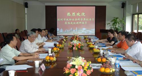 为进一步深化我校改革,加快发展,10月27日下午,深圳市政协副主席张效民等市政协社会科学界别委员莅临我校调研指导工作。调研座谈会在我校办公楼201室举行,由深圳市政协常委、市社会科学院院长乐正主持,校长章必功、党委副书记陶士平和副校长李凤亮等出席会议。