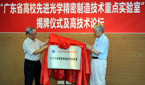 姚建铨院士和章必功共同为广东省高校先进光学精密制造技术重点实验室揭牌。