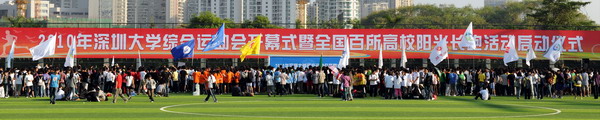 裁判员、运动员代表宣誓。章必功校长宣布2010年深圳大学综合运动会开幕、大学生阳光长跑活动开始。