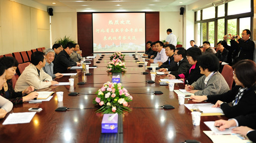 11月11日上午,河北省高等教育学会考察团来我校考察交流。校长章必功、副校长邢锋及学校相关部门负责人与考察团在办公楼201进行了座谈。
