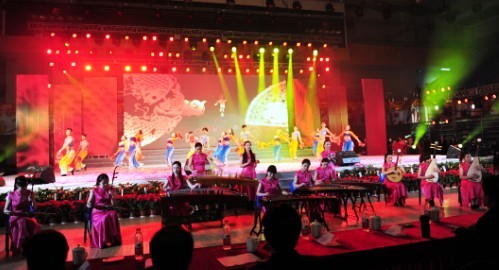 仪式结束后,一曲《喜洋洋》以熟悉而欢快的旋律将观众带进中国传统节日的喜庆里,晚会正式拉开序幕。歌曲《闪亮的日子》《在那遥远的地方》追述了老一辈人的青春、梦想与追求;舞蹈《万泉河水》回忆了老一辈人青春里的羞涩与纯真。与此不同的是,歌曲串烧尽显新一代青年的激情与活力;闪耀的街舞将80、90后的张扬个性、激情青春表现得淋漓尽致。