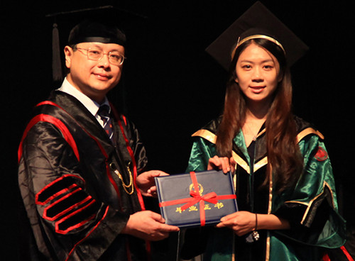在悠扬的乐曲声中,徐晨为参加毕业典礼的每位毕业生颁发了毕业证书并合影留念。