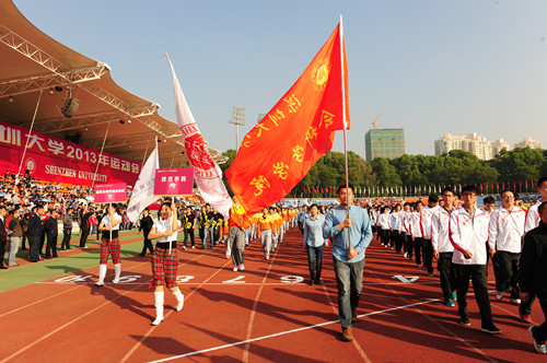 12月3日上午,深圳大学2013年运动会在田径运动场开幕。全体在家校领导,各学院、教研教辅单位、机关各部室负责人和全校各学院师生参加开幕式。