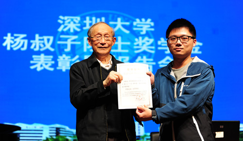 李凤亮向在场师生介绍了杨叔子及其学术成就,并宣读了《关于表彰深圳大学杨叔子院士奖学金获奖学生的决定》。