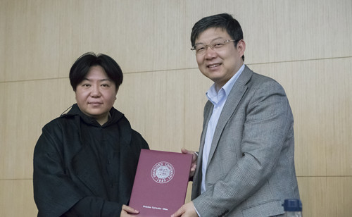 讲座结束后,李清泉为田沁鑫颁发深圳大学特约教授聘书,并赠送“深大讲坛”纪念牌。