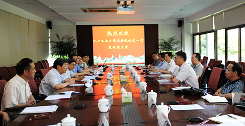 5月26日下午,北方工业大学校长王晓纯一行来我校调研。我校校长李清泉及校办、教务部、文学院、经济学院、艺术设计学院等部院相关负责人在办公楼201举行座谈。
