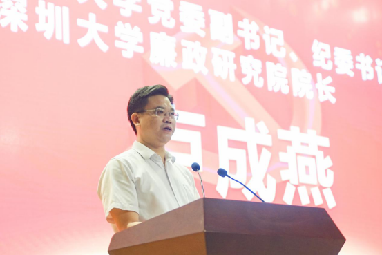卢成燕代表深大廉政研究院发言。他说,深圳大学作为“特区大学”、“窗口大学”和“实验大学”,紧跟党和国家发展与改革的需要,高度重视政党制度、政治建设和监察体制改革等方面的理论研究,取得了一系列重要成果。深圳市纪委监委和深圳大学决定共同组建廉政研究院,深入推动相关的理论研究和实践探索,加强大湾区廉政协同机制建设,开展相关领域的合作,是顺应新时代、新形势的需要。他要求廉政研究院要在市纪委监委和深圳大学的领导下,把好方向,明确任务,脚踏实地,加快发展,努力达到预期的建设发展目标。