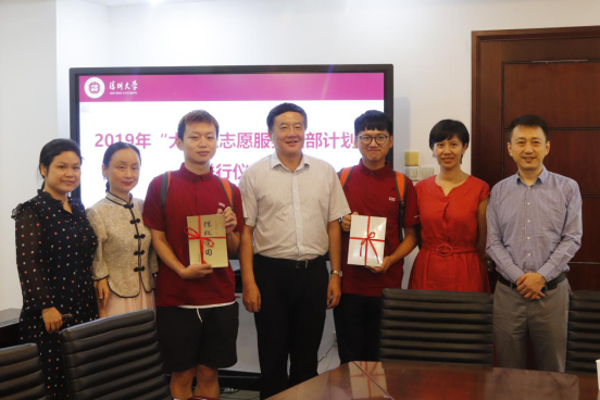 殷涛介绍了2019年“大学生志愿服务西部计划”招募情况。深圳大学从2004年开始在应届毕业生和在读研究生中选拔志愿者参加西部计划。15年来,已有百余名深圳大学志愿者用智慧和汗水耕耘西部沃土、奉献本省贫困地区。今年,经部署动员和一系列规范的选拔流程,我校10名应届毕业生报名参加“西部计划”。校团委通过考察面试,选拔推荐了7名志愿者参加省级面试,经过体检和志愿者本人的意愿确认后,最终选派2名志愿者分赴西藏和新疆等地开展为期一年的志愿服务。