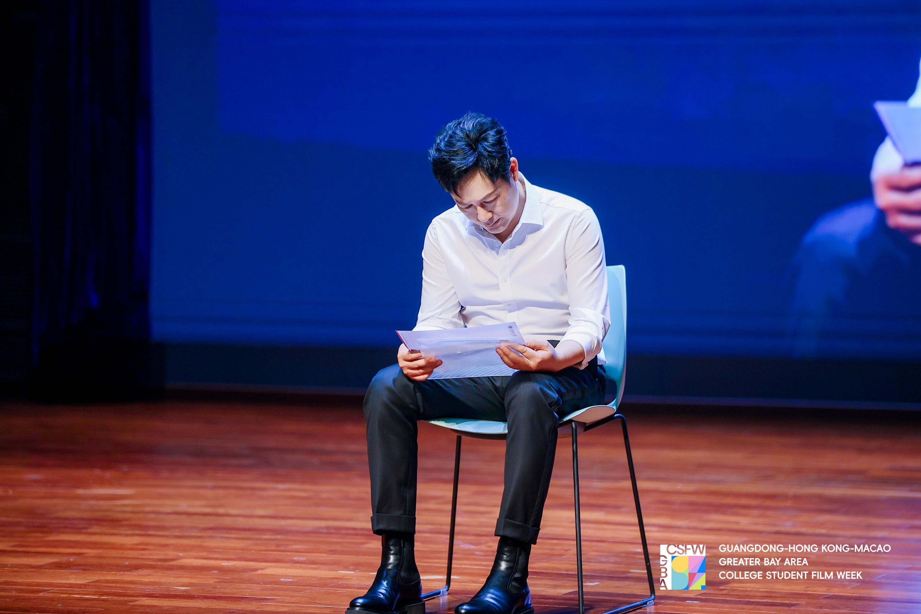 除了表演技巧,张颂文更分享了“积累生活” 的方法论。他坦言,自己24岁才考北京电影学院,此前做导游的经历,反而成了塑造角色的财富:“我当年羡慕大学生,甚至想借深大饭卡去食堂体验一顿——那些没上过大学的遗憾,后来都成了观察生活的动力。” 他建议学生保持好奇心,主动创造生活阅历,“细细品尝过的日子,会呈现出非常真实的细腻度,将来很可能就会在你的艺术中发光发亮。”