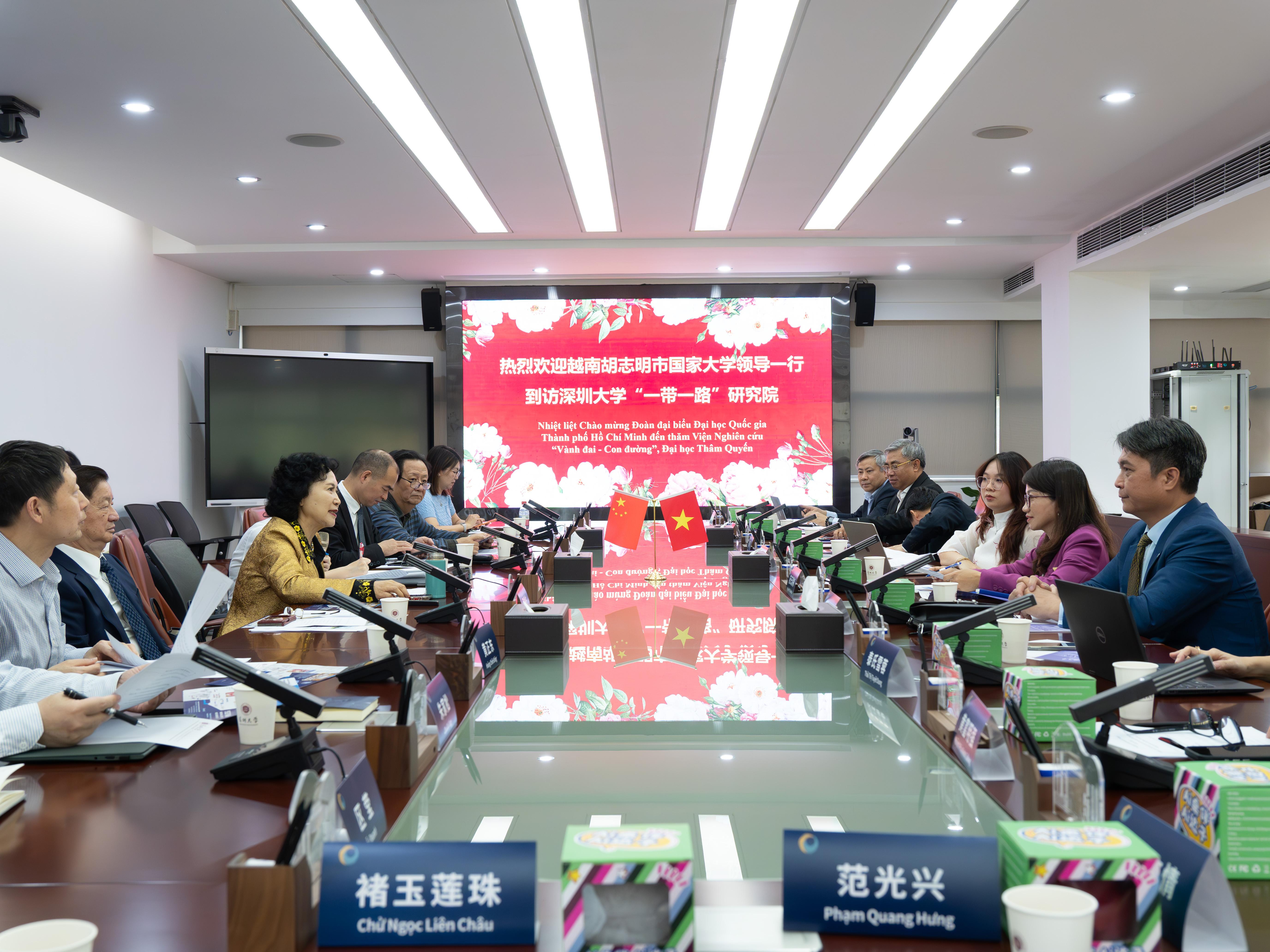 会见后,越南胡志明市国家大学与深圳大学“一带一路”国际合作发展(深圳)研究院相关学者、企业家召开座谈会,围绕深圳大学科研创新成就所作的贡献、两校之间的研究合作与交流、学生和教师的交流等议题展开探讨。