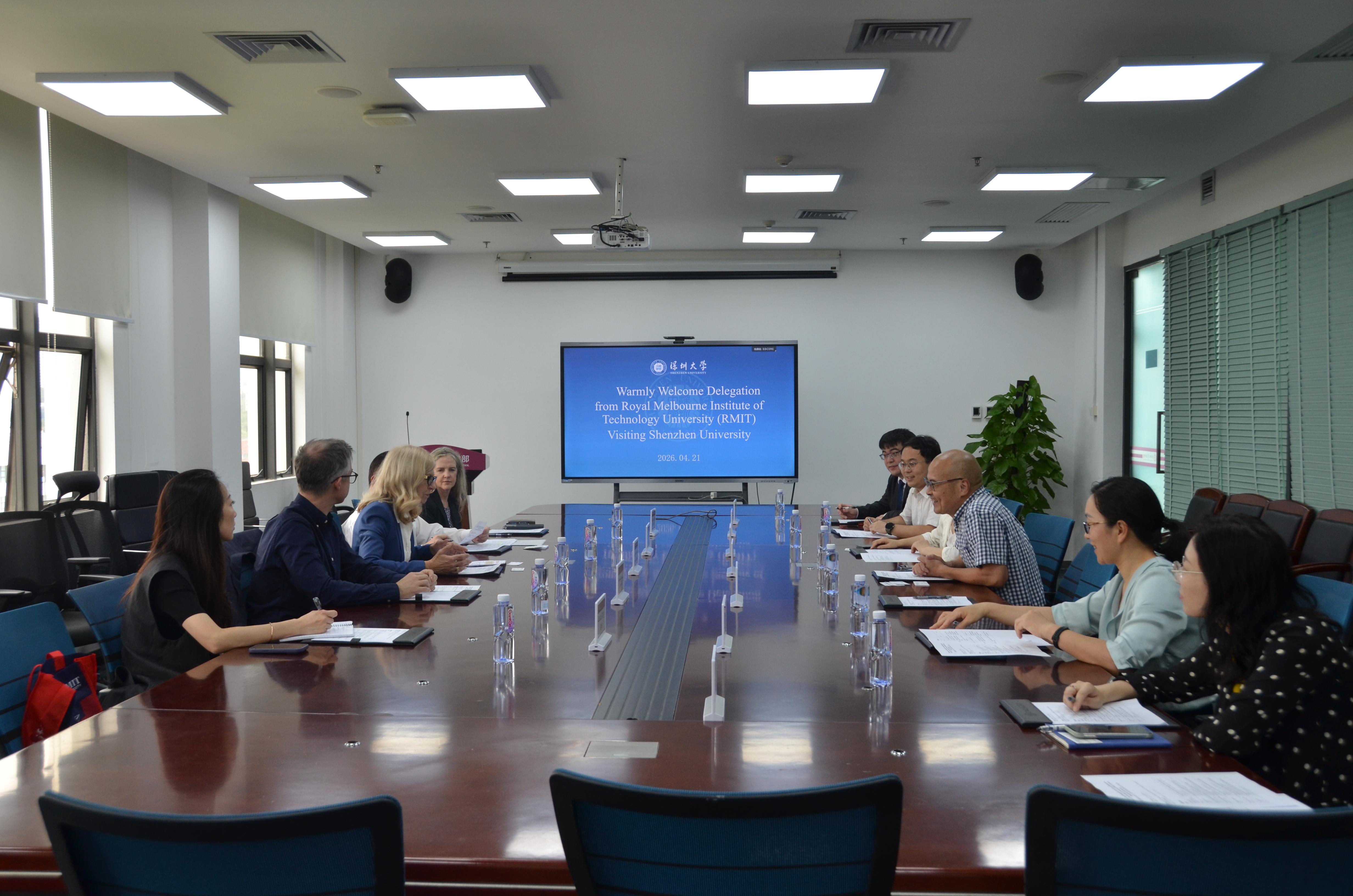 2026年4月21日,皇家墨尔本理工大学(RMIT)常务副校长Catherine Itsiopoulos率代表团来访深圳大学,双方在深圳大学丽湖校区守正楼签署合作谅解备忘录(MOU),并围绕未来合作方向进行深入探讨,就在工科领域申报教育部中外合作办学项目达成共识。深圳大学副校长李永华出席活动。