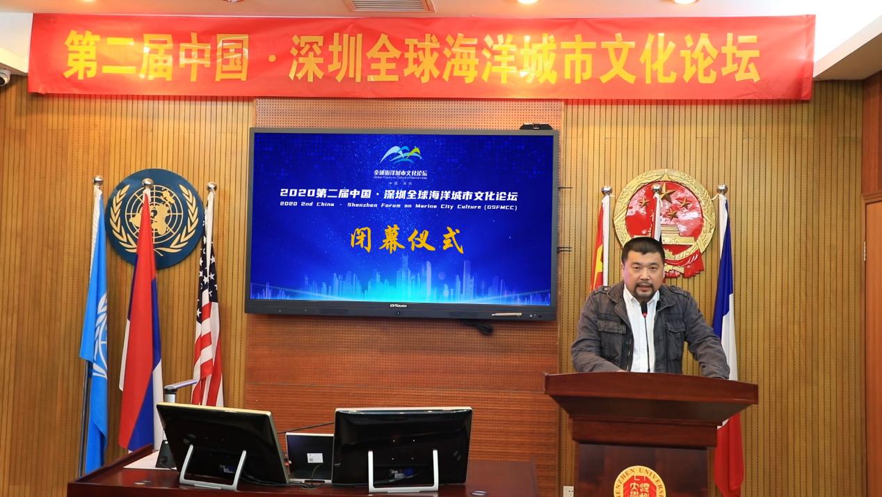 2020第二届中国•深圳全球海洋城市文化论坛于2020年12月29日通过深圳商报读创客户端读创直播圆满举办。本届论坛由深圳市社会科学院(深圳市社会科学联合会)、深圳大学主办,深圳大学海洋艺术研究中心、深圳市海洋文化艺术研究会承办,深圳大学外国语学院、深圳大学传播学院、深圳市海洋文化艺术研究会承办。论坛围绕着“新时代海洋文化艺术发展的建议”、“海洋文化教育发展对全球海洋中心城市建设的作用”、“海洋文旅文创产业发展的期待”等三大议题,组织国内外专家、各领域精英共同发声。
